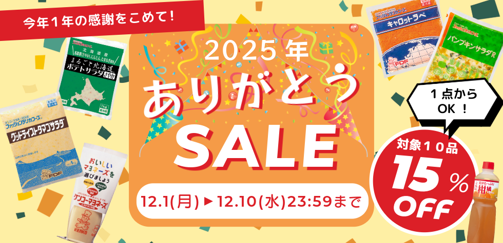 業務用のお客様から人気の商品上位10品を1点以上購入15%OFFで購入できるキャンペーンを開催!