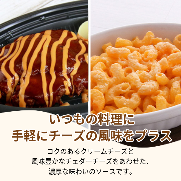 コクのあるクリームチーズと風味豊かなチェダーチーズをあわせた、濃厚な味わいのソースです。