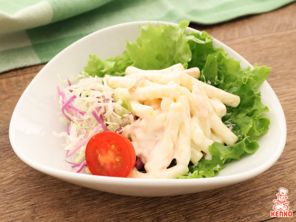 マカロニ、ドレッシング(食用植物油脂、砂糖類(粉末水あめ、砂糖)、鶏卵、醸造酢、食塩)、にんじん、砂糖、醸造酢/調味料(アミノ酸)、グリシン、増粘剤(キサンタン)、酢酸Na、酵素、香辛料抽出物 、(一部に小麦・卵・大豆を含む)主な原材料の産地