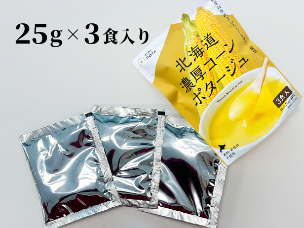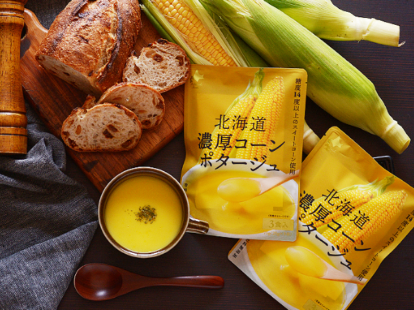 - 北海道産の糖度14度以上の朝採れとうもろこしをたっぷり使用したコーンポタージュです。お湯や温めた牛乳を注いで混ぜるだけで、濃厚