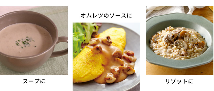 パスタの他にも、牛乳や生クリームで伸ばしてスープにしたり、オムレツのソースやリゾットなど、様々な料理にお使いいただけ、料理の幅が広がります。
