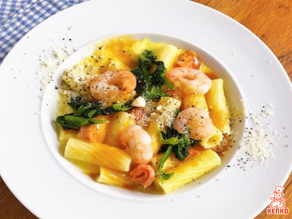 海老などの魚介類はもちろん、ほうれん草やブロッコリー、アスパラガスなど野菜を加えても、美味しくお召し上がりいただけます。