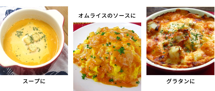 パスタの他にも、牛乳や生クリームで伸ばしてスープにしたり、オムライスのソースやグラタンなど様々な料理に使えて、手軽にリッチな一品が仕上がります。