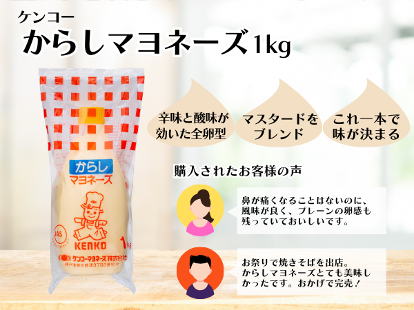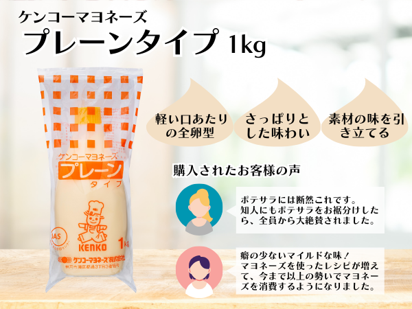 - 「卵黄タイプ」「全卵タイプ」「バラエティ」のマヨネーズをセットにしました。欧風マヨネーズ、ケンコーマヨネーズ プレーンタイプ、ケンコーからしマヨネーズの3本セットを通常価格の10%OFFでお買い求めいただけます。