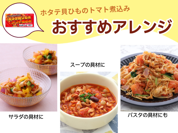 ホタテ貝ひもを美味しくアップサイクル!宮城県産のホタテ貝ひもを、炒めたたまねぎとにんにくが入ったホットな味わいのトマトベースのソースで、旨味たっぷり満足度の高い味わいに仕上げました。電子レンジ加熱が可能なので、温めてそのままご飯のおかずやおつまみに。さらに、パスタやスープの具材としても使えて、料理の幅が広がります。